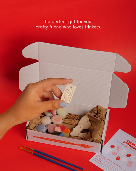 Once you’re done, bring it back to our studio for firing to make it food-safe. This kit is perfect for gifting! Gift to your friends and fam for painting sessions at home.